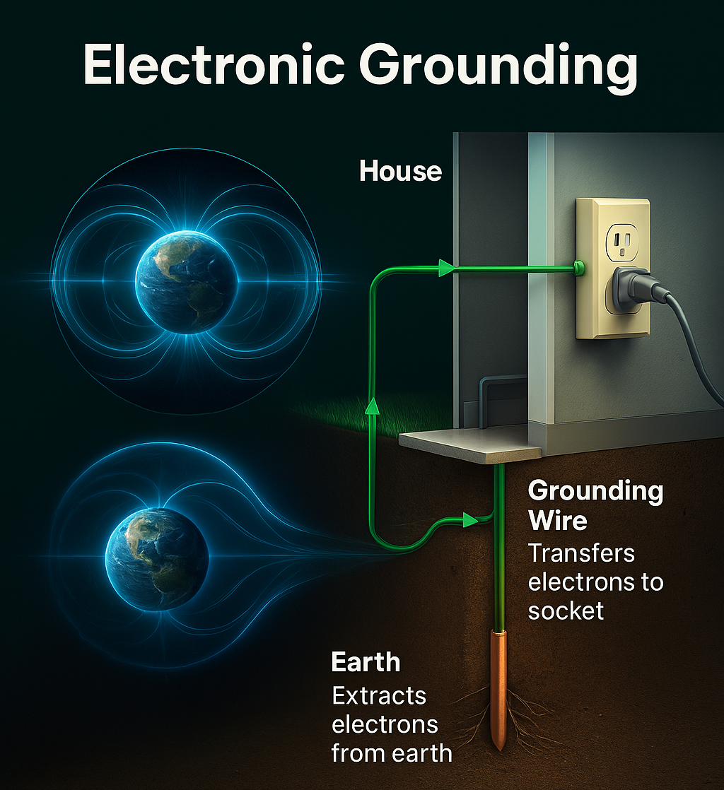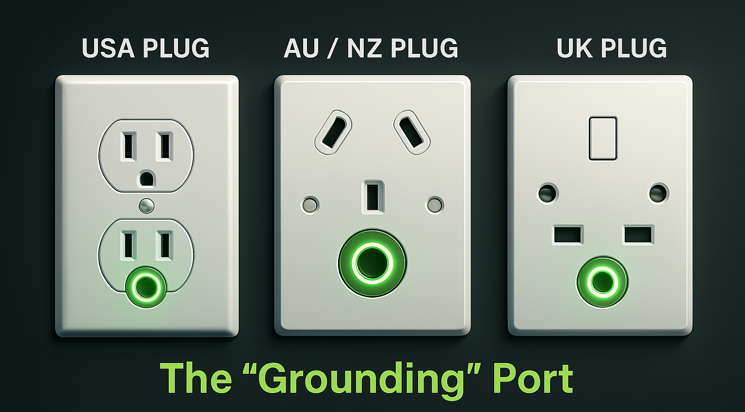 In power sockets (USA, UK, AU/NZ), the grounding hole connects to a wire that leads directly into the earth. This is the safety channel that allows excess electricity to escape safely.